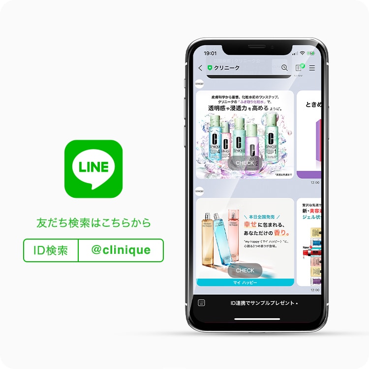 クリニークのLINE公式アカウントを「友だち追加」「ID連携」で、 新製品や限定品、キャンペーンなど様々な情報をお届けします。